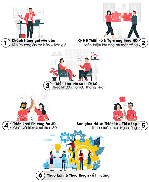 – Chủ đầu tư xem xét quy trình thiết kế và sắp xếp thời gian địa điểm gặp gỡ.