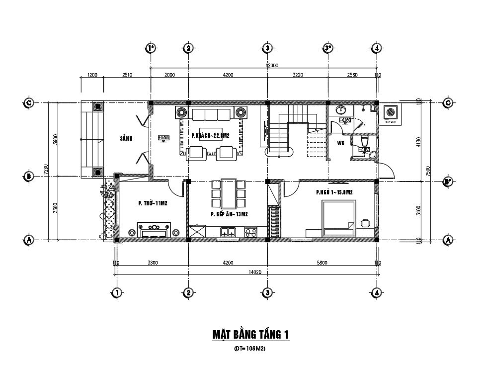 Thiết kế chưng cư mini 5 tầng, 1 lửng, 1 tum DT 120m2 – Hạ Đình Hà Nội
